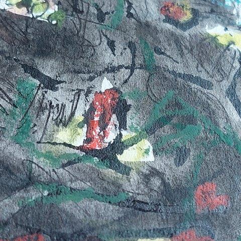 035_“Waldbaden“ 25./26.6.22 ML – MT (Aqu+Tu+PastellKr) – 26,5x23cm Karton