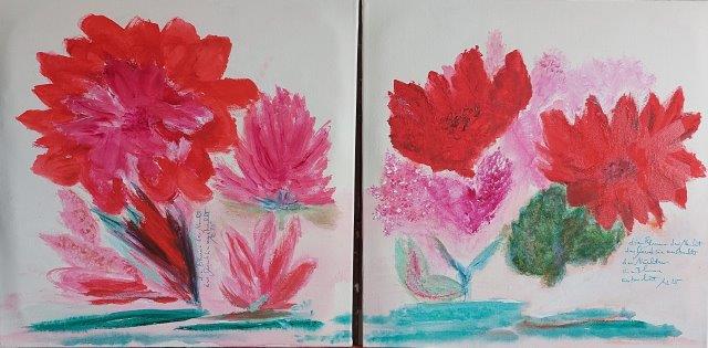 17_BLUME 1&2 + Text ML25 Pastellkreide+Acryl – 2 á 50x50cm LW-KR „die Blume der Nacht – der Mond sie anstrahlt – des Nächtens – die Blume – erstrahlt (c) ML25